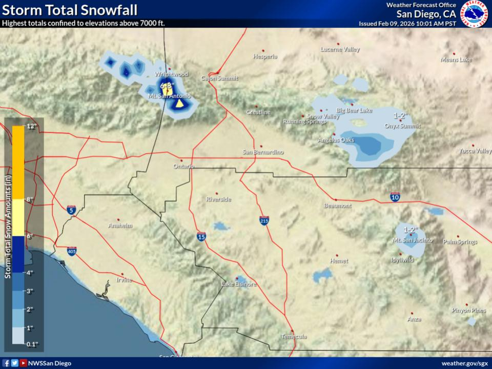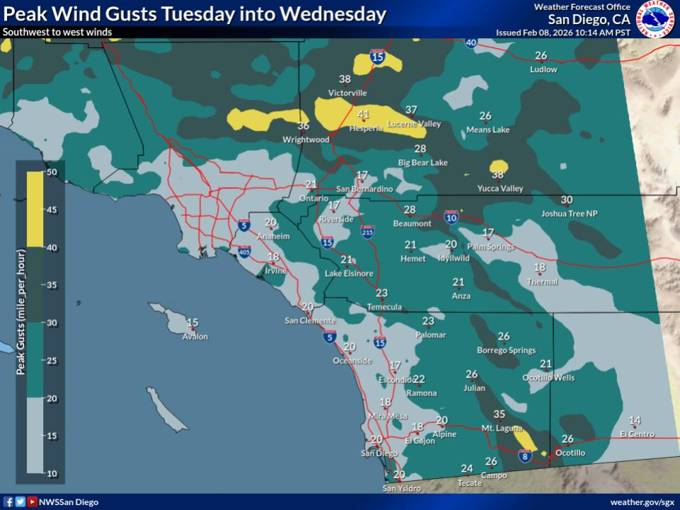 Along with the storm, gusting winds were expected through mountain passes and the deserts of the Inland Empire.