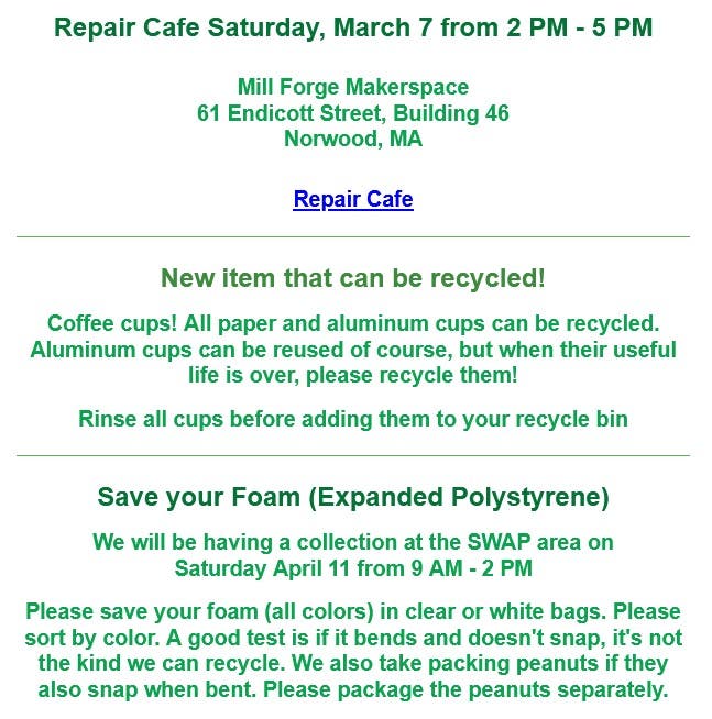 Lots of great information in this TSARC Newsletter for everyone. Take a read, mark your calendars for upcoming recycling and collections!