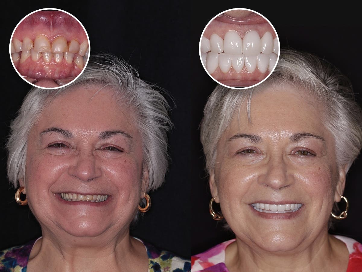 The results go far beyond what conventional cosmetic dentistry can achieve. Porcelain veneers placed on a collapsed bite simply make your teeth look whiter — they don’t change the shape of your face, improve your profile, or address the underlying bite dysfunction. Non-surgical Face Lift Dentistry addresses the root cause. The cosmetic transformation is a byproduct of getting the bite right.