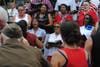 Josef Bienstock salutes as the Bethel AME Church choir sings the national anthem. Lillie H. Hendry listens as the Bethel AME Church choir sings. Photos and videos by Karen Wall, Patch staff