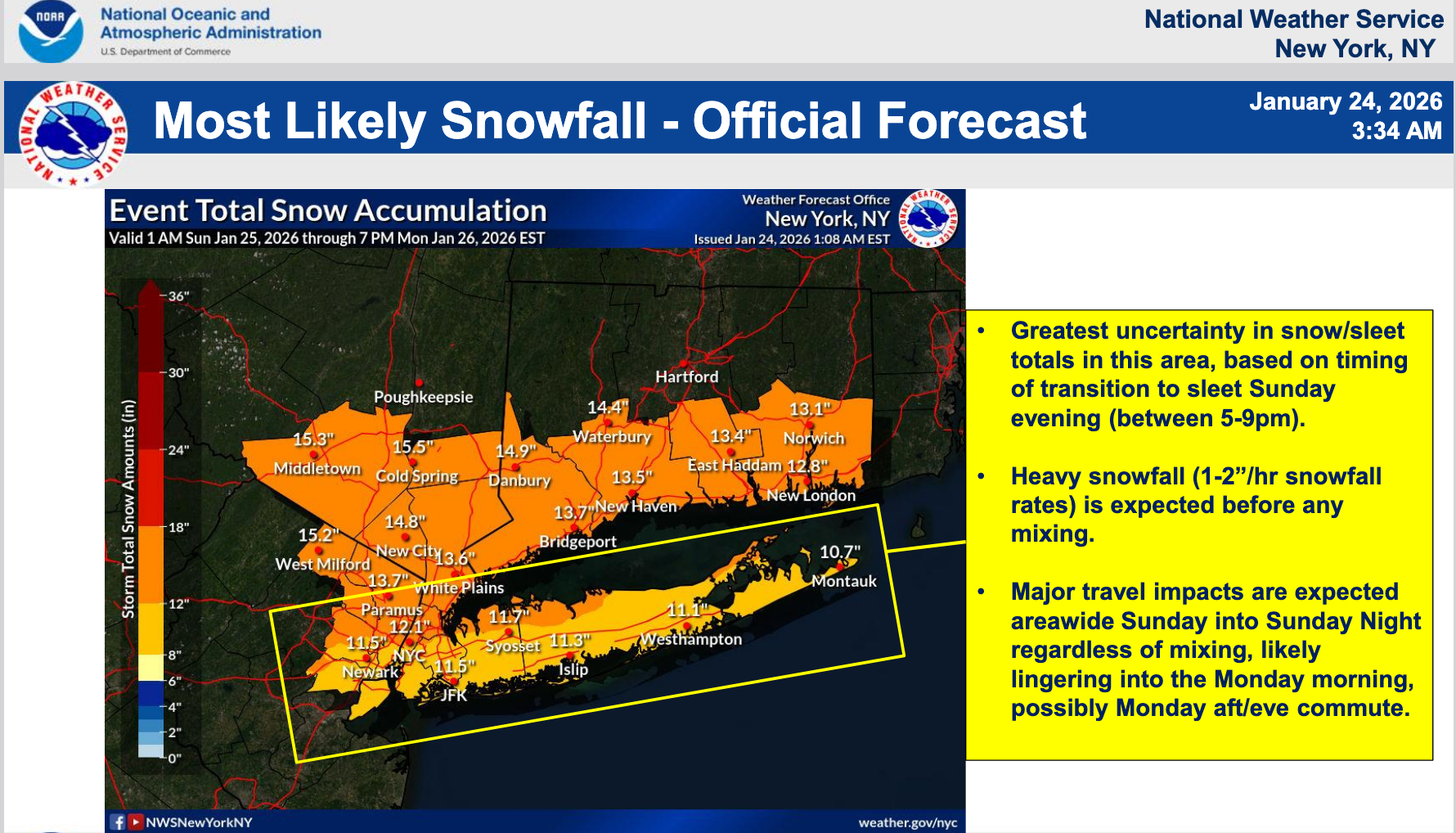 JERSEY CITY, NJ — The National Weather Service has issued a winter storm warning for Jersey City from 3 a.m. Sunday to 6 p.m. on Monday night.