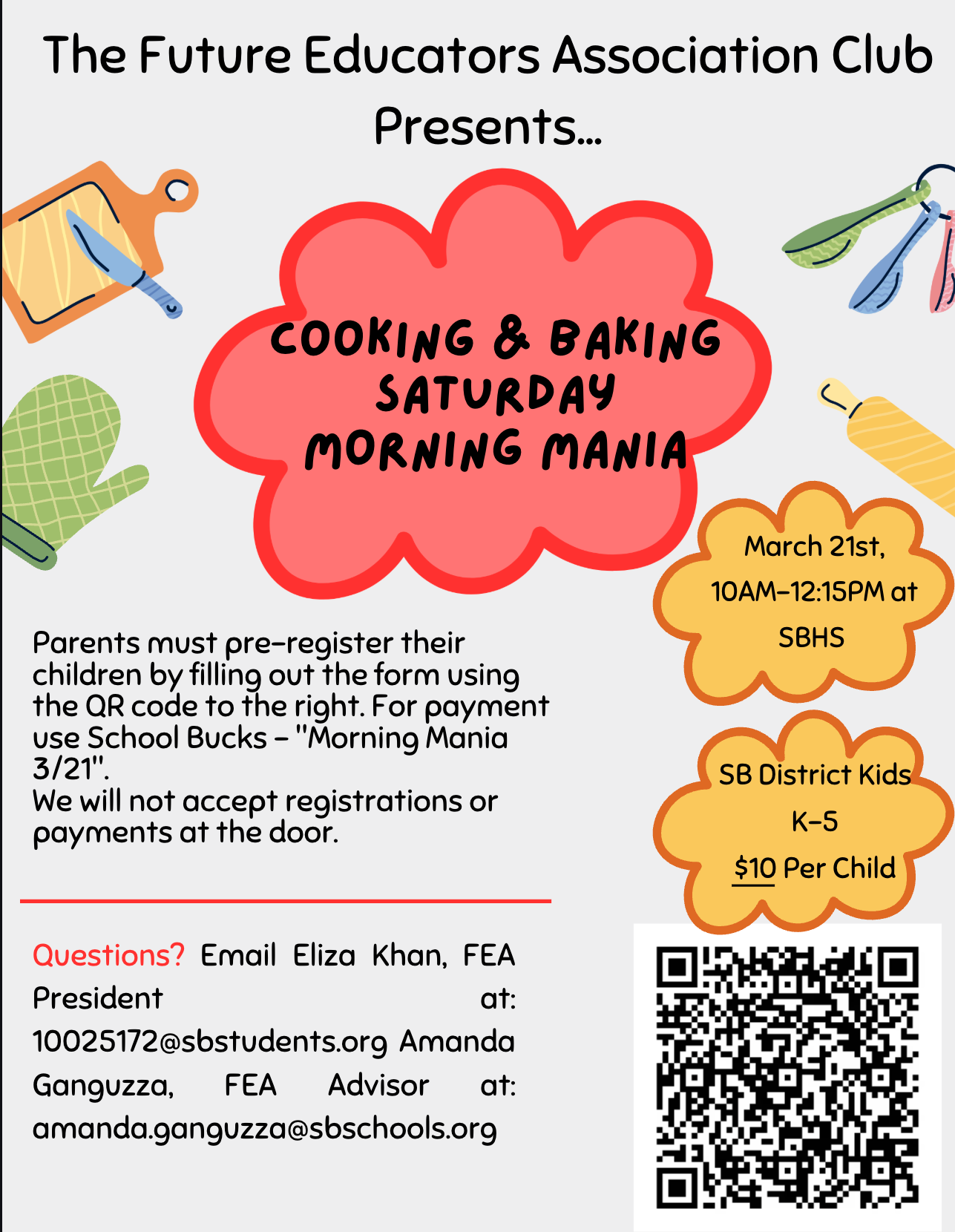 Parents with questions can contact FEA Club President Eliza Khan at 10025172@sbstudents.org or club advisor Amanda Ganguzza at amanda.ganguzza@sbschools.org.