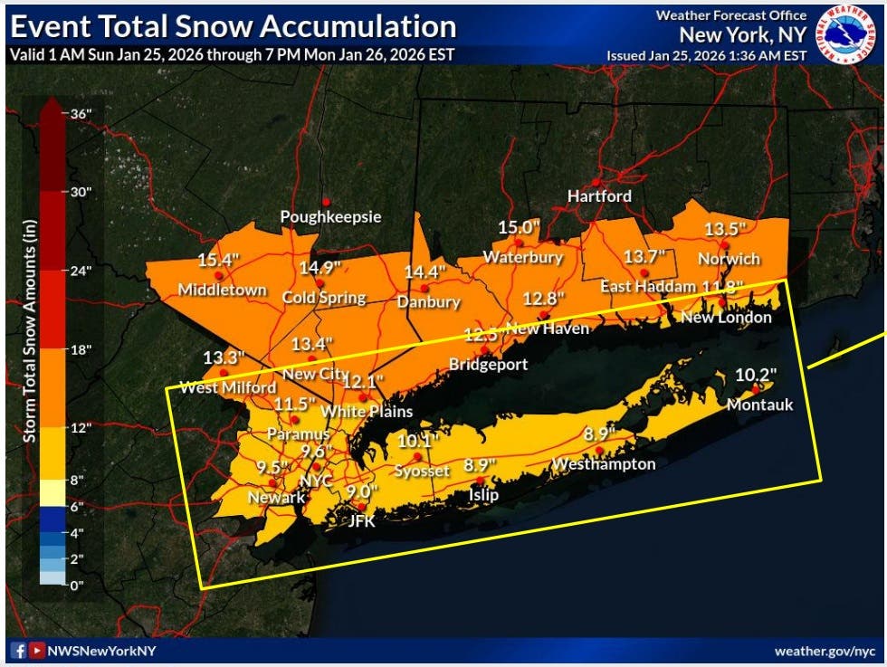 As of Sunday morning the weather service was predicting about 9 inches of snow in New York City.