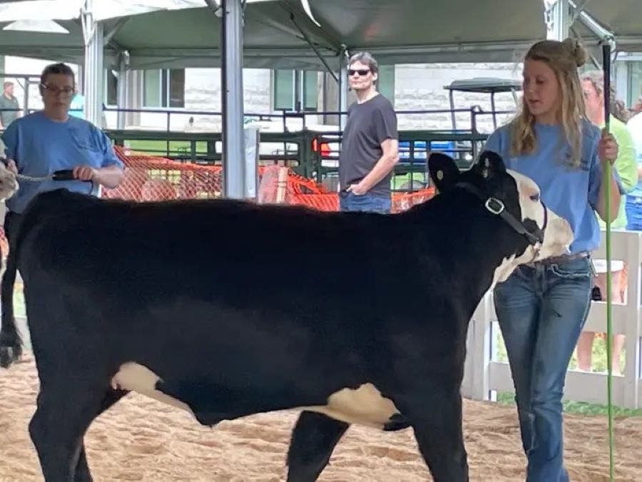 Showing off a cow during the event. (Jeff Werner/Patch)