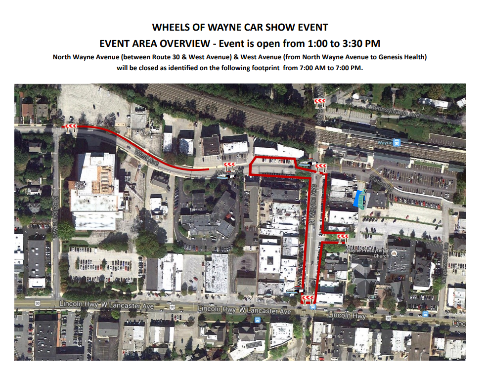 The event will close North Wayne Avenue between Lancaster Avenue and West Avenue from 7 am. to 7 p.m. A portion of West Avenue will be closed, with limited access, during those same hours. Parking will be prohibited in these areas during the closure. Vehicles parked there will be towed.