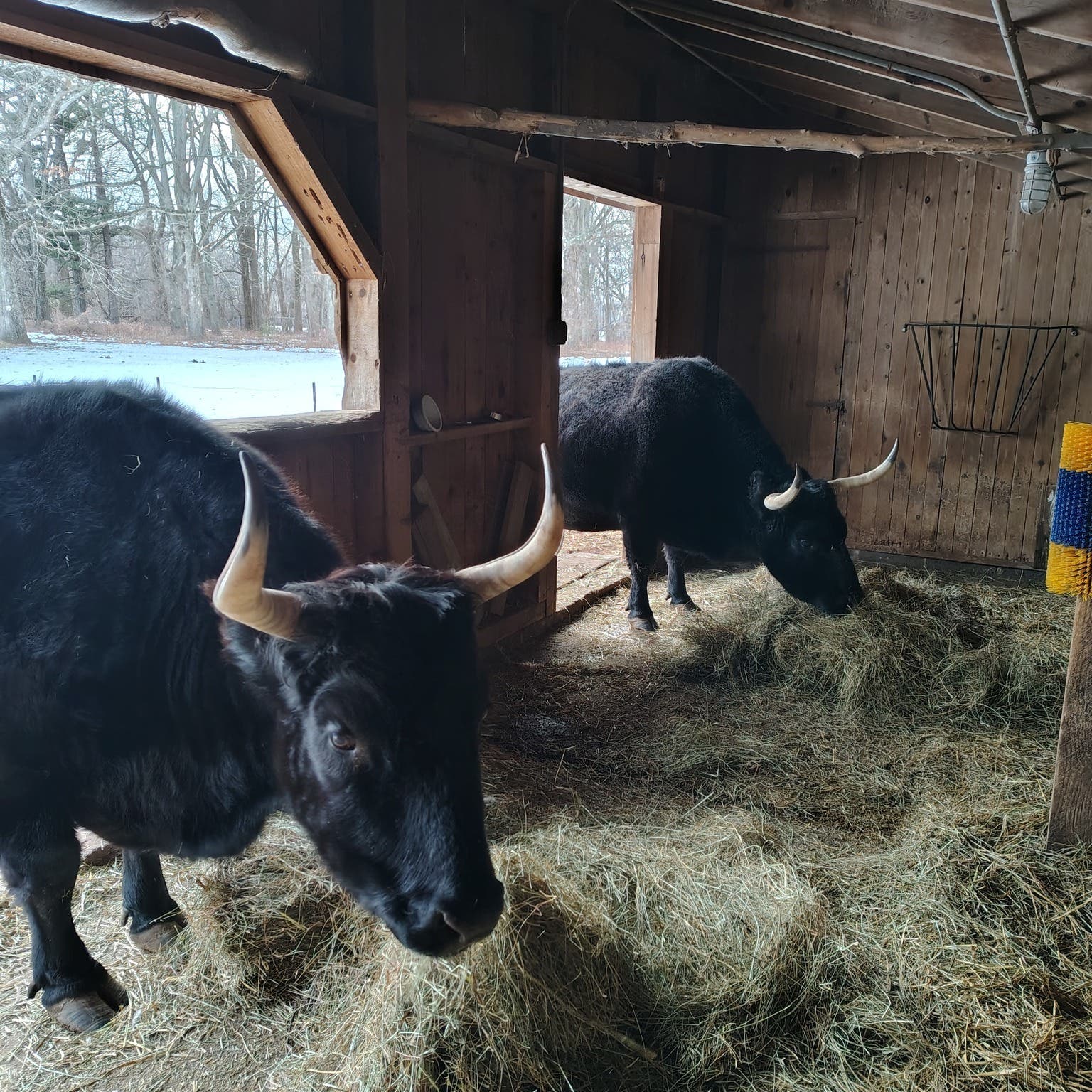 The oxen joined the manor in May 2021 at the age of 10, following their retirement from farm work in Maine. Officials said it was a "special and meaningful coincidence" when they learned that the oxen were related to the previous Pennsbury Manor oxen team, Bill and Red.