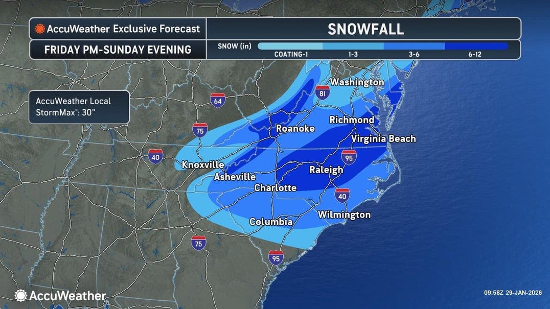 In an update released Thursday morning, AccuWeather forecasters said the storm is expected to develop in the Southeast on Friday, then rapidly strengthen along the Atlantic Coast into a bomb cyclone by Saturday.